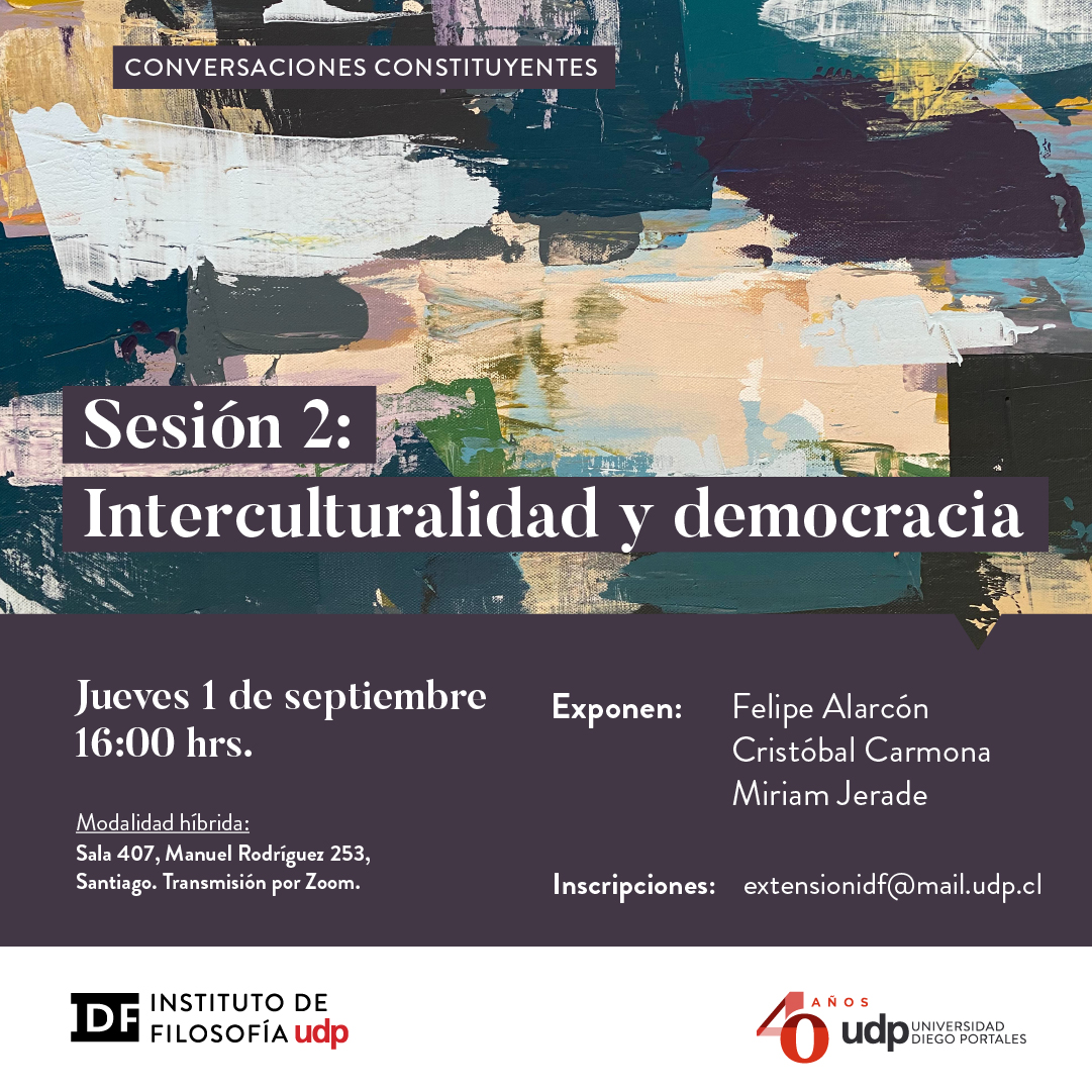 🔜El Instituto de @FilosofiaUdp invita a toda la comunidad a ser parte de la 2da sesión del ciclo #ConversacionesConstituyentes, titulada "Interculturalidad y democracia", que se desarrollará mañana 01 de septiembre (16 horas) en modalidad híbrida✔️