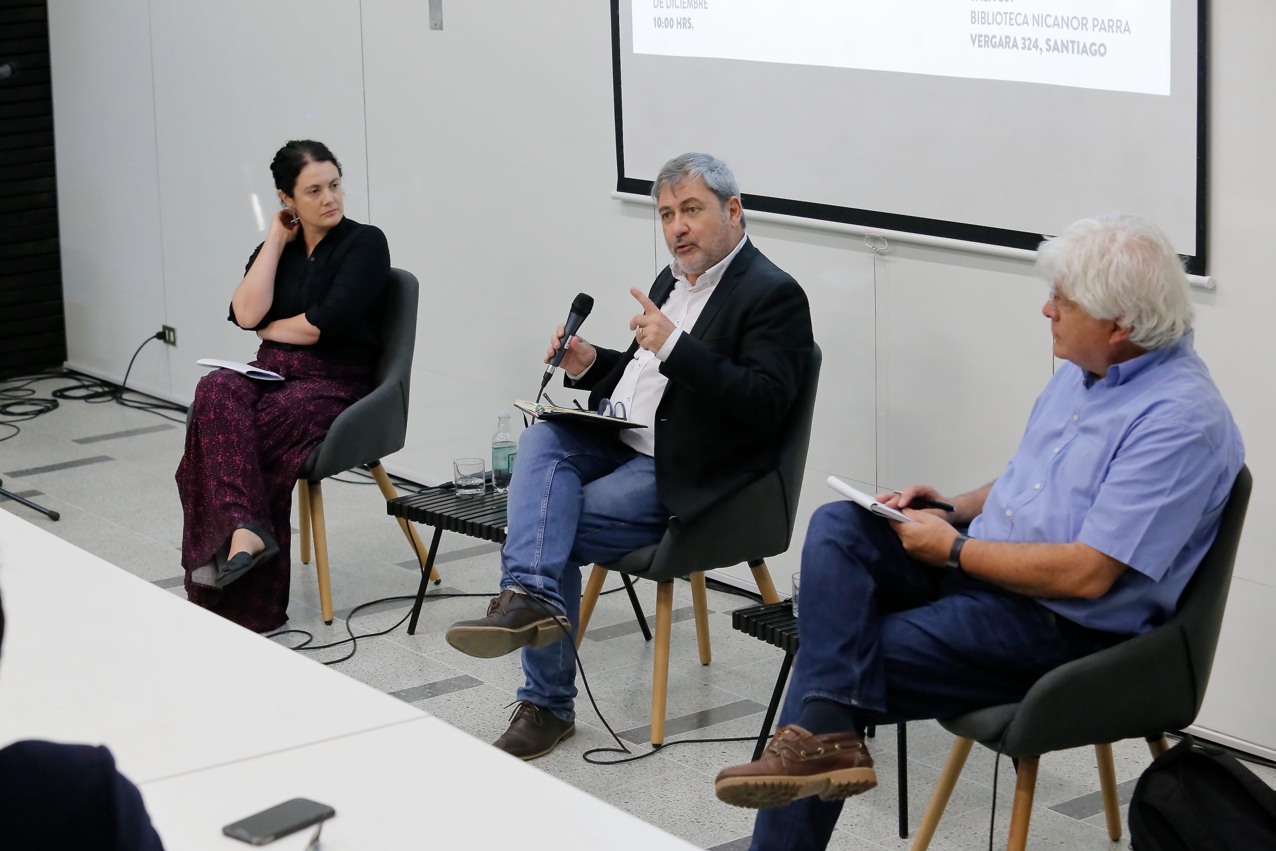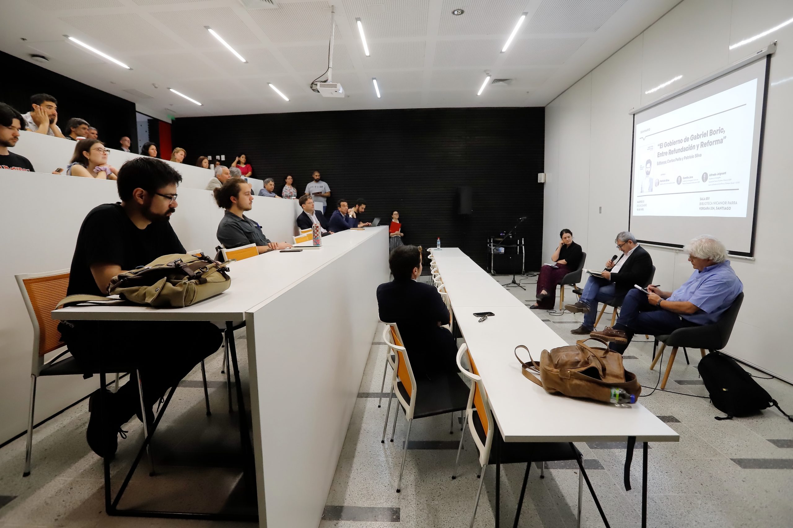 En un encuentro realizado en la Biblioteca Nicanor Parra, Camila Jara, académica e investigadora del Centro de Políticas Comparadas de Educación; Alfredo Joignan, académico e investigador de la Facultad de Ciencias Sociales e Historia; y Patricio Silva, académico de la Universidad de Leiden, comentaron el libro El gobierno de Gabriel Boric. Entre refundación y reforma (Editorial Catalonia).