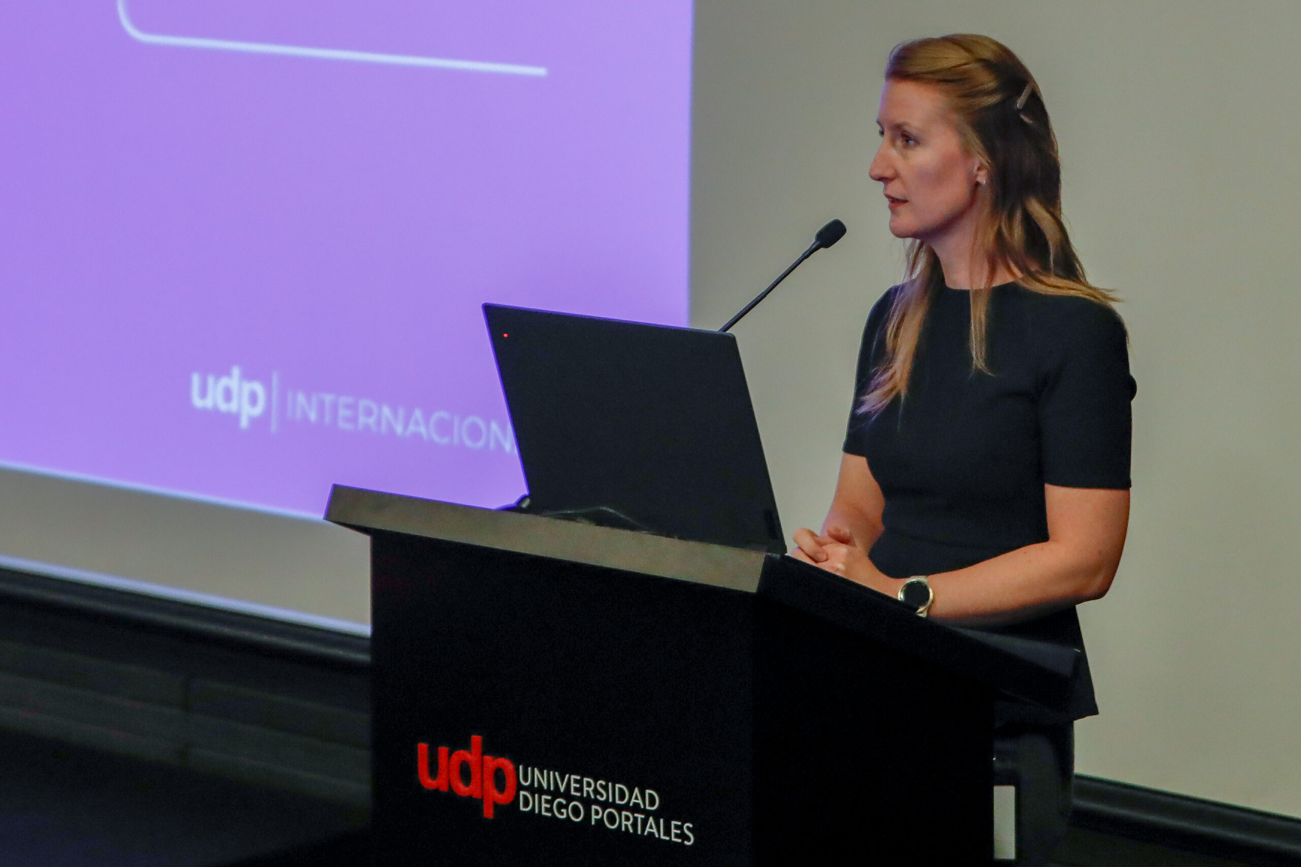 Anoek van den Berg, directora de la Dirección General de Relaciones Internacionales, destacó las ventajas de cursar un intercambio estudiantil en la Universidad Diego Portales.