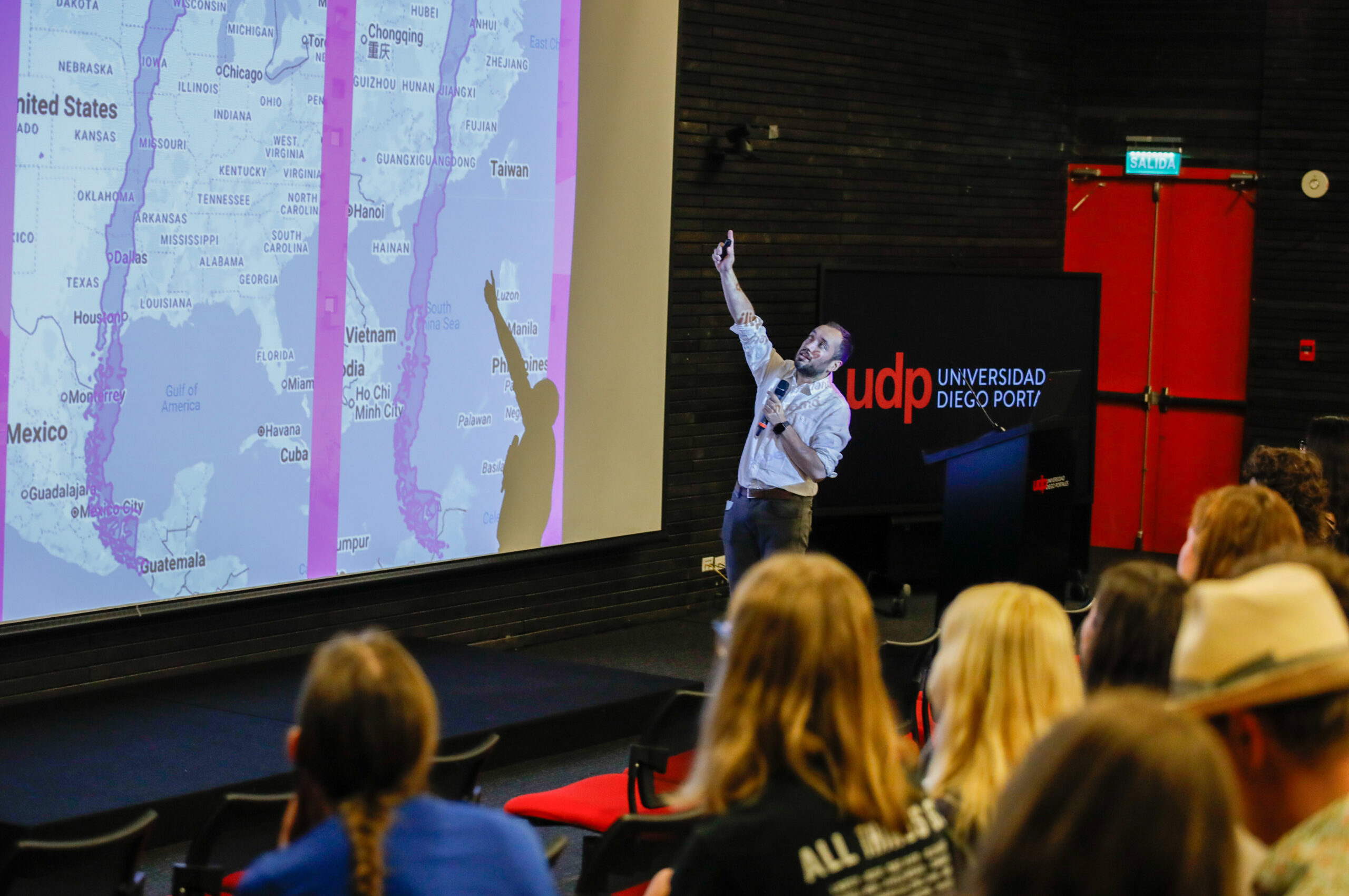 La jornada continuó con la presentación del profesor de español Rodrigo Santibáñez, quien dictó una clase sobre historia y geografía de Chile, con el fin de contextualizar el clima político y social del país.
