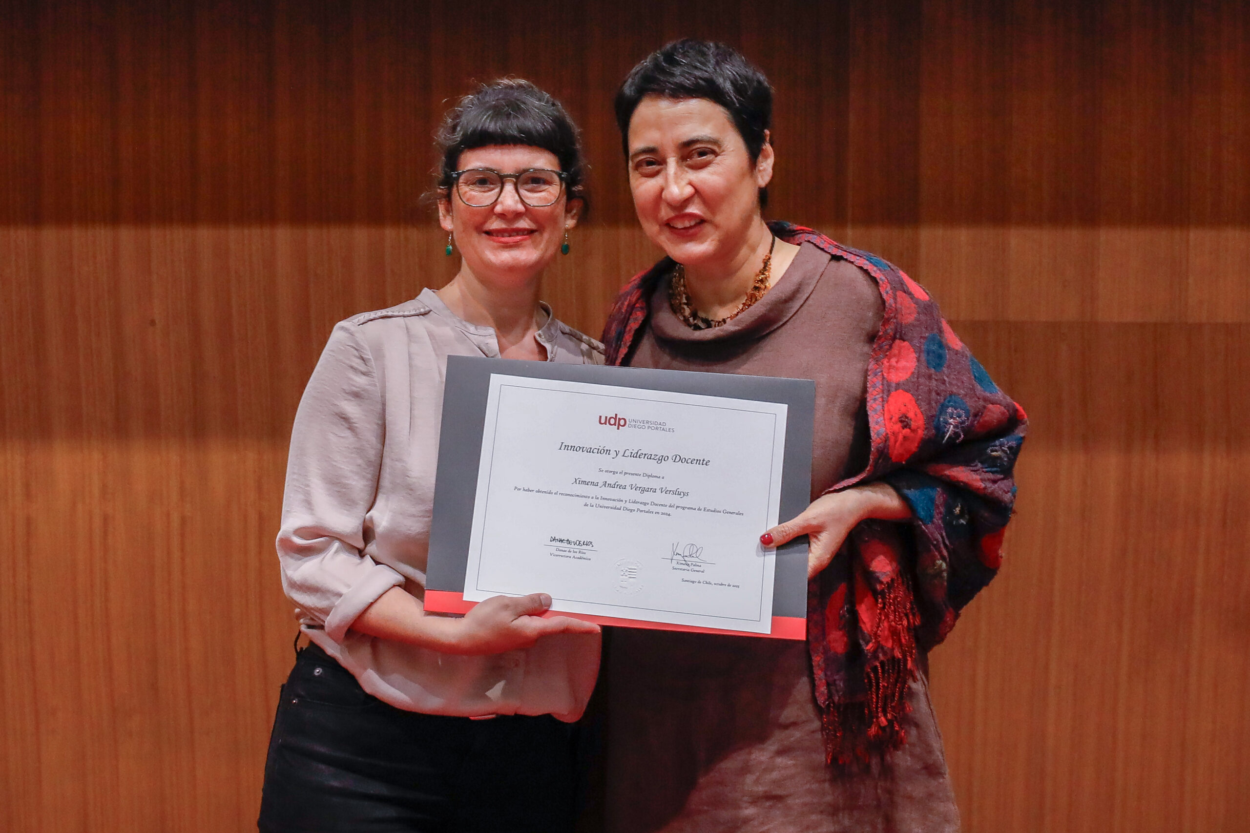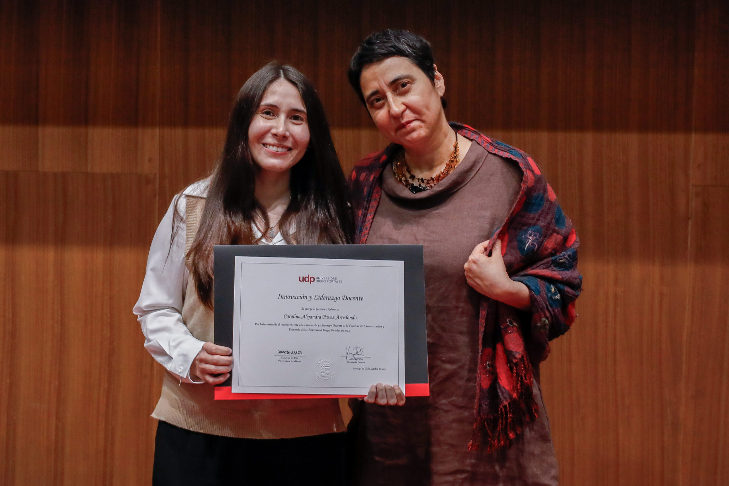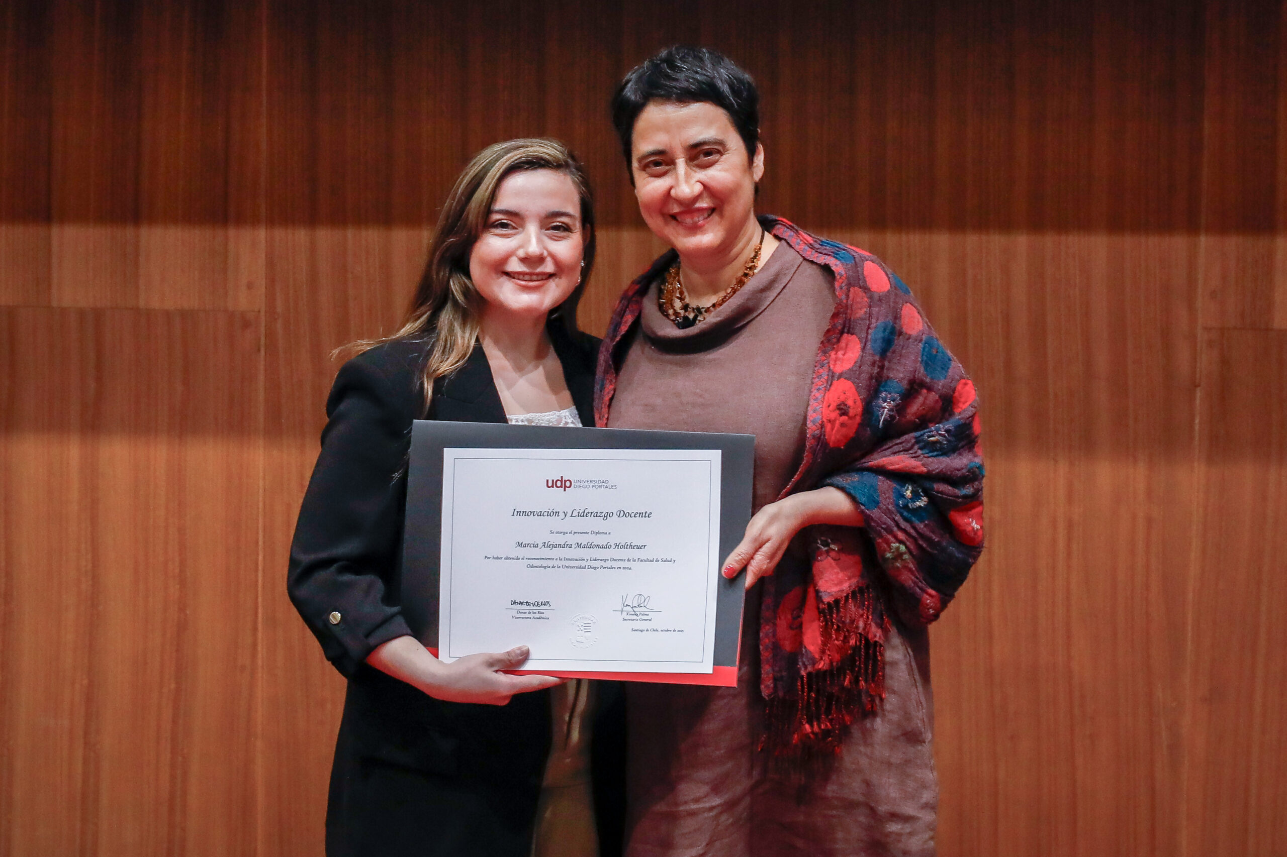 Con posterioridad, se entregó el premio a la Innovación y Liderazgo Docente a aquellos profesores y profesoras que han demostrado una alta motivación por el mejoramiento de la docencia, liderando innovaciones pedagógicas relevantes en su facultad o unidad académica. Recibieron este premio los y las siguientes académicas: