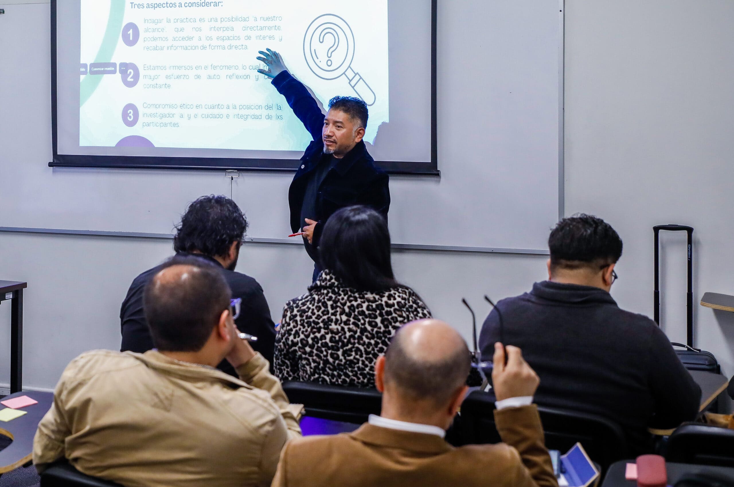 Durante el encuentro se llevó a cabo el taller “Comunidades de práctica como promotoras de la investigación en docencia”, impartido por Víctor Rendón Cazales, coordinador de Generación y Diseminación del Conocimiento en Educación del CEIDE-UNAM. La actividad tuvo como objetivos generar una reflexión crítica sobre la práctica docente en Educación Superior y promover estrategias colaborativas que fortalezcan la investigación en pedagogía.