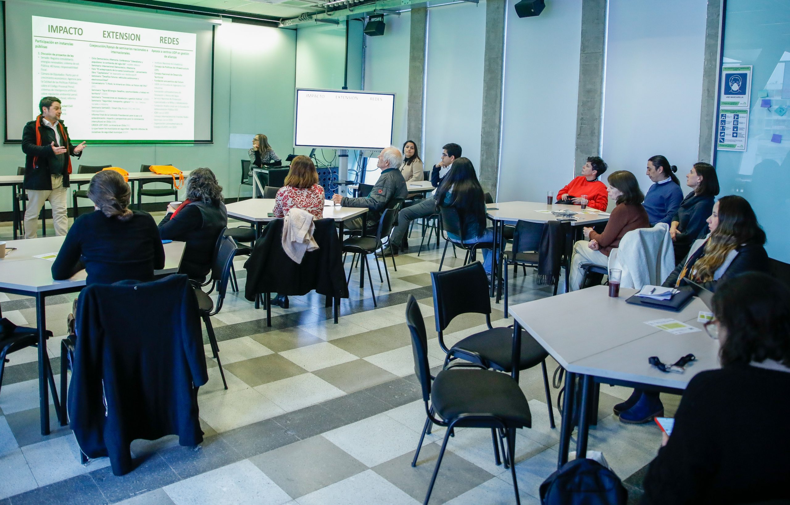 En la ocasión, el Sebastián Pérez Bannen, director/a general de Vinculación con el Medio, expuso sobre Vincula, proyecto que busca impulsar el intercambio de saberes entre integrantes de instituciones académicas y el Congreso Nacional. Sobre esta instancia, la autoridad universitaria llamó a las y los docentes a ser parte de esta iniciativa. “Este es un espacio para explorar y que va en la línea de la incidencia”, enfatizó.