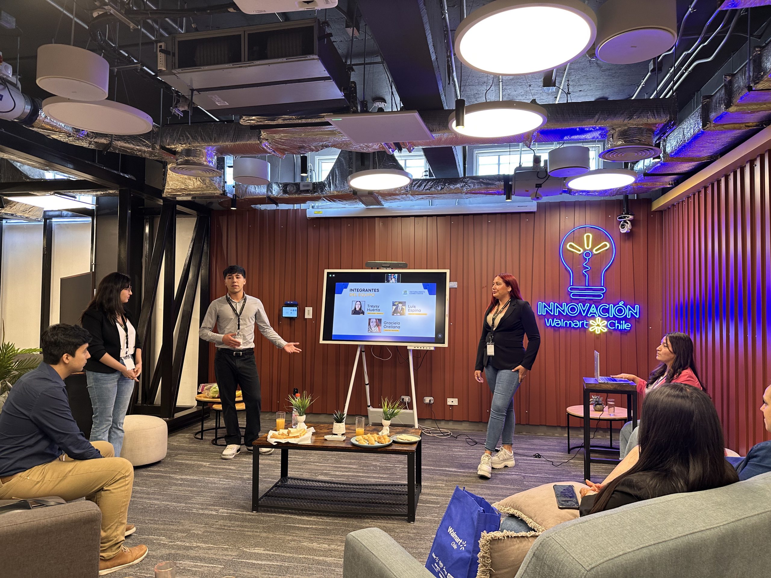 Por otro lado, Walmart, líder mundial en retail, tercer empleador de Chile, planteó el desafío de cómo mejorar la percepción de frutas y verduras entre los clientes, contribuyendo a sus metas de sostenibilidad y mejorando la experiencia de compra para millones de consumidores. Los estudiantes ganadores participaron en una visita guiada al Walmart Lab, donde fueron recibidos por el equipo de innovación, quienes les ofrecieron una visión exclusiva de los procesos más avanzados de la empresa, incluyendo metodologías de punta, simulaciones prácticas y los inventos más destacados que transforman la experiencia del cliente. Los ganadores, presentaron su proyecto frente a los líderes de Cultura e Innovación de Walmart, generando un enriquecedor intercambio de ideas.