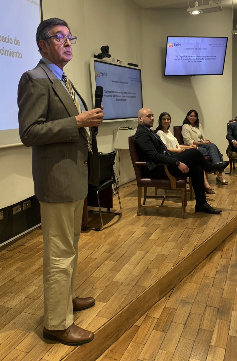 Posteriormente, los panelistas abordaron el tópico “La Organización Empresa como un espacio de encuentro, satisfacción, bienestar y crecimiento de las Personas” y dieron a conocer sus experiencias sobre este tema, abundando en análisis y reflexiones de alto interés para el estudiantado.