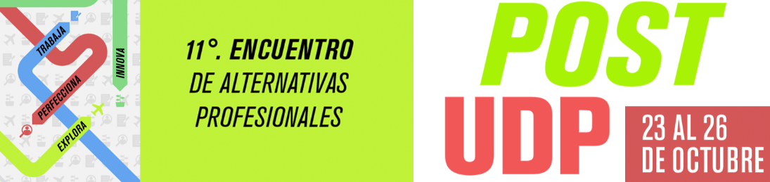 Llega octubre y con este el ya tradicional POSTUDP, el encuentro de alternativas profesionales que en su undécima versión se realizará entre el lunes 23 y el jueves 26 de este mes, con actividades de interés pensadas en el desarrollo profesional del estudiantado y alumni, con diferentes exponentes. De esta manera, contempla la realización de charlas, talleres y una feria laboral online y presencial, donde más de 85 empresas exhibirán sus diferentes posibilidades de trabajos para estudiantes, prácticas y trabajo para profesionales.