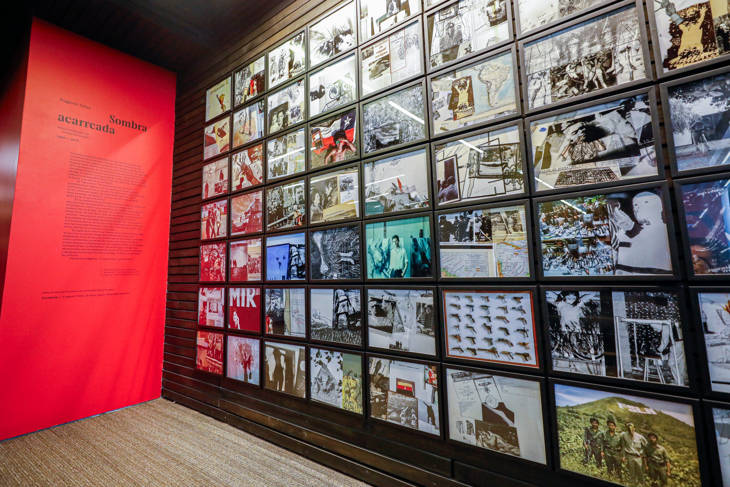 La exposición Sombra Acarreada es un atlas compuesto por mesas de trabajo que datan de 1960 hasta 2025.